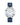 Legendary heritage evoked with a stainless steel case, synthetic blue spinel cabochon crown at the 12 o’clock position, and 3 diamonds individually hand-set on white mother-of-pearl dial.