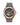 Rose gold tone stainless steel case with grey tone outer ring.