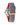 Grey dial with flat mineral crystal. Grey textured silicone strap with a contrasting red underside. Water resistance to 200 meters.