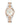 This two-tone watch, in rose-gold and silver tones, has a stainless steel case and bracelet with an elegant flair. The white mother-of-pearl dial is hand set with 11 diamonds for both the look and feel of a luxury watch. This quality timepiece is well-made and beautifully detailed, making it an elegant addition to any collection.