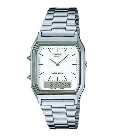 A stylish update of a classic Casio design, this retro timepiece is built for stellar contemporary styling. The piece features a combination display and a fold over clasp. Perfect for everyday and street styling.