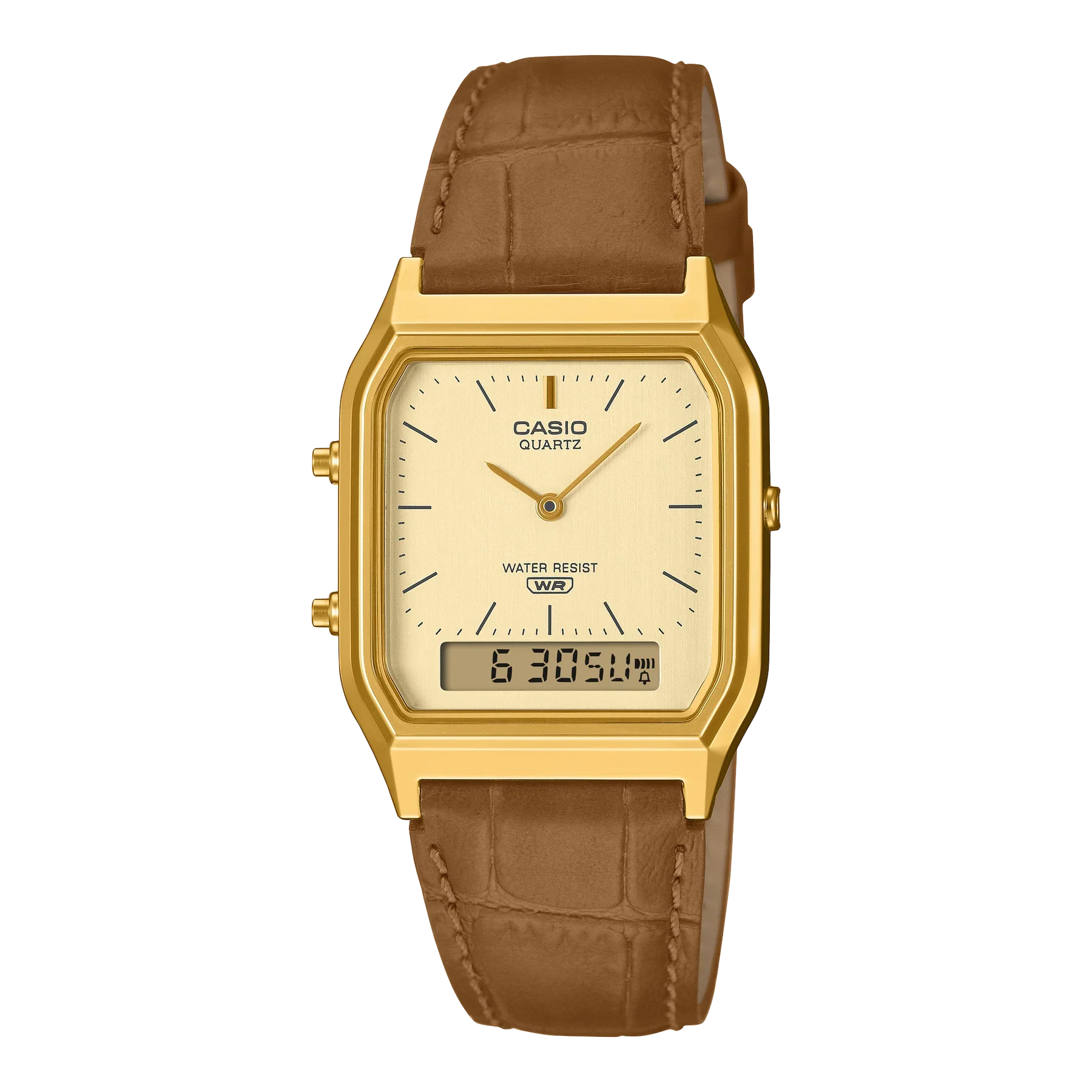 A stylish update of a classic Casio design, this retro timepiece is built for stellar contemporary styling. The piece features a combination display and a leather band. Perfect for everyday and street styling.