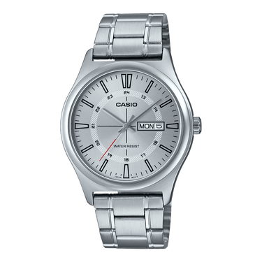 Simple and stylish bar index marks and handy date-day display at the 3 o’clock position deliver stylish design and functional convenience. Water resistance for daily use frees you from worry when washing up or out in the rain.