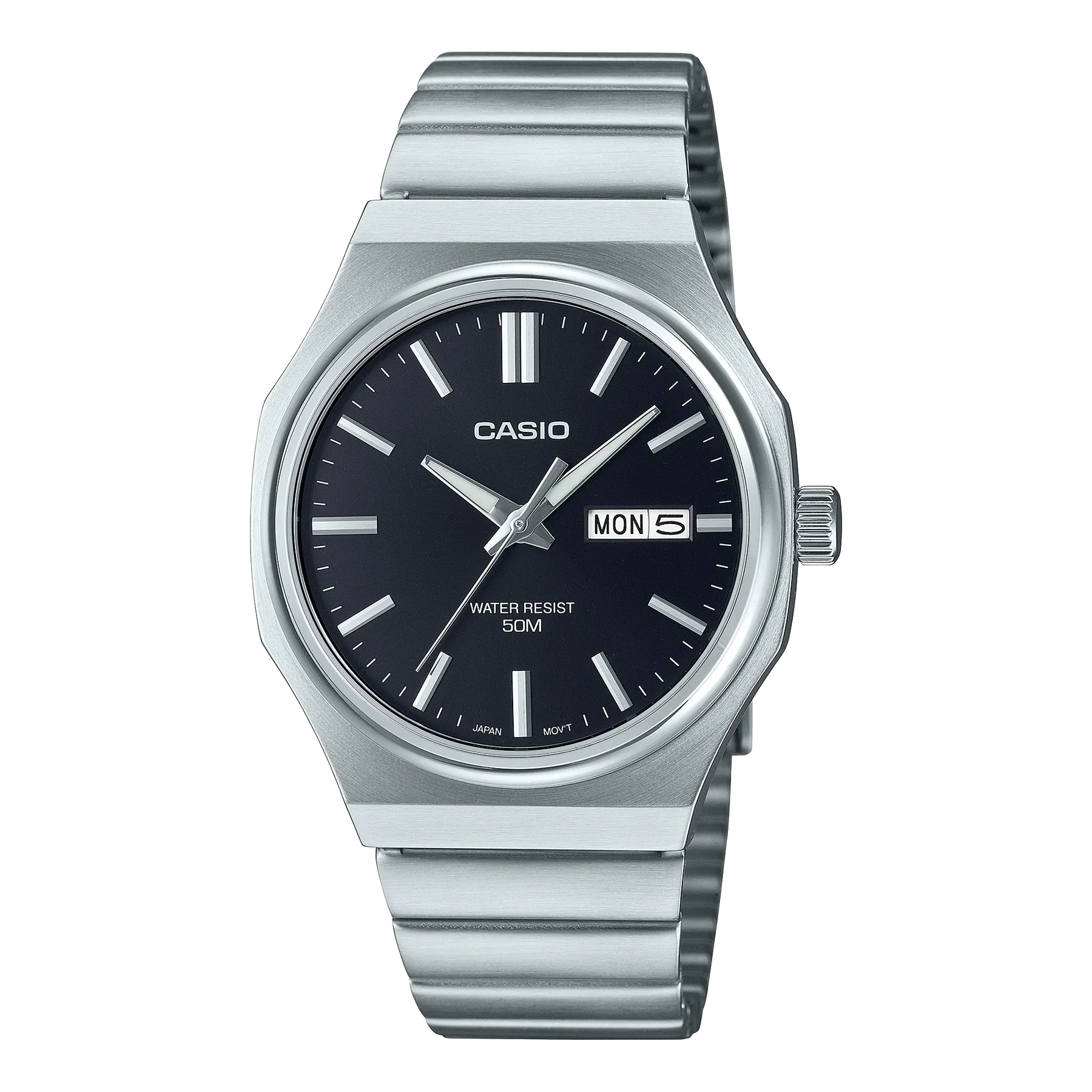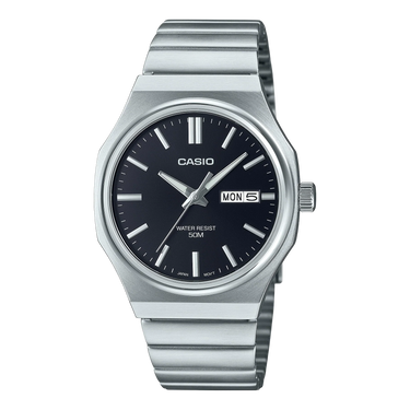 Go for bold, streamlined style with a classic, easy-read analogue watch featuring a metal octagonal case.