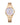 Featured in a gold stainless steel bracelet and pink mother of pearl dial. This striking accessory adds feminity to any occasion.